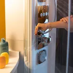 Les chambres anti-allergènes de Nomad Hotel Dijon sont non seulement équipées d'un bureau, d'une TV avec chaînes satellitaires et d'une TV par satellite, mais disposent également d'une salle de bains comprenant une toilette séparée et une douche avec un sèche-cheveux et des draps de bain.